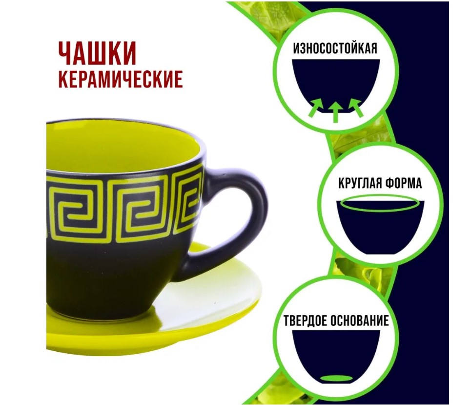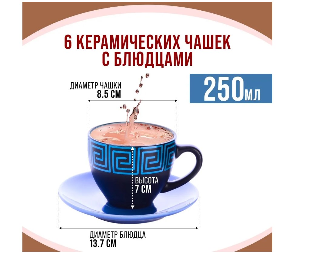 Чайный сервиз на 6 персон подойдет как для повседневного использования, так и праздничной сервировки стола. Чашки с блюдцами изготовлены из высококачественной керамики, повышенной прочности, устойчивой к появлению царапин, сколов и перепаду температур. Нанесенный элегантный рисунок не выцветает и не стирается со временем. Поэтому, даже спустя несколько лет, кофейный набор будет выглядеть точно так же, как и в день, когда вы начали им пользоваться. Чашки имеют удобные, изящные ручки. Стильный дизайн чайной пары придется по вкусу и ценителям классики, и тем, кто предпочитает утонченность и изысканность. Кружки подходят для горячих и холодных напитков, для чая и кофе. Набор станет прекрасным дополнением к Вашему чаепитию вместе с семьей или друзьями. Изделия можно использовать в микроволновке и посудомоечной машине. Набор бережно упакован в надежную коробку. Чайный набор может стать идеальным подарком для мамы, сестры, бабушки и друзей, ведь кружки для чая – это не просто красивая посуда, это способ выразить заботу и внимание к близким!