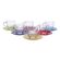 Оригинальный набор с прозрачными чашками и квадратными блюдцами разных цветов.