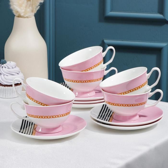 Сервиз чайный Magistro «Миледи», 6 чашек 220 мл, 6 блюдец d=14 см Габариты и вес Вес брутто 2.5 кг Особенности Цвет Розовый В наборе, шт. 6 Количество персон 6 Объём, мл 220 Рисунок Да Материал Фарфор Наличие подставки Нет Можно мыть в посудомоечной машине Да Можно использовать в СВЧ-печи Да