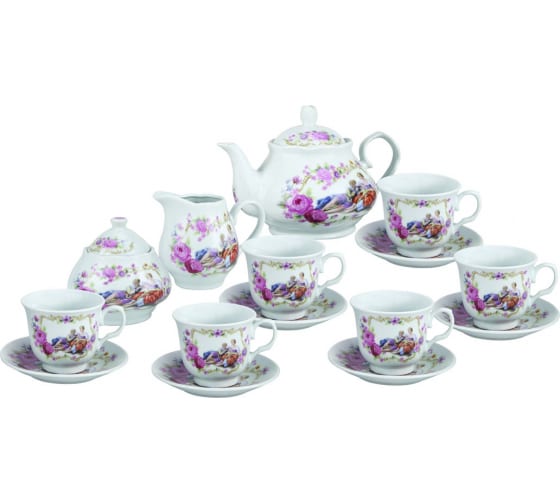 чашка - 6 шт, блюдце - 6 шт, чайник - 1 шт, молочник - 1 шт, сахарница - 1 шт.