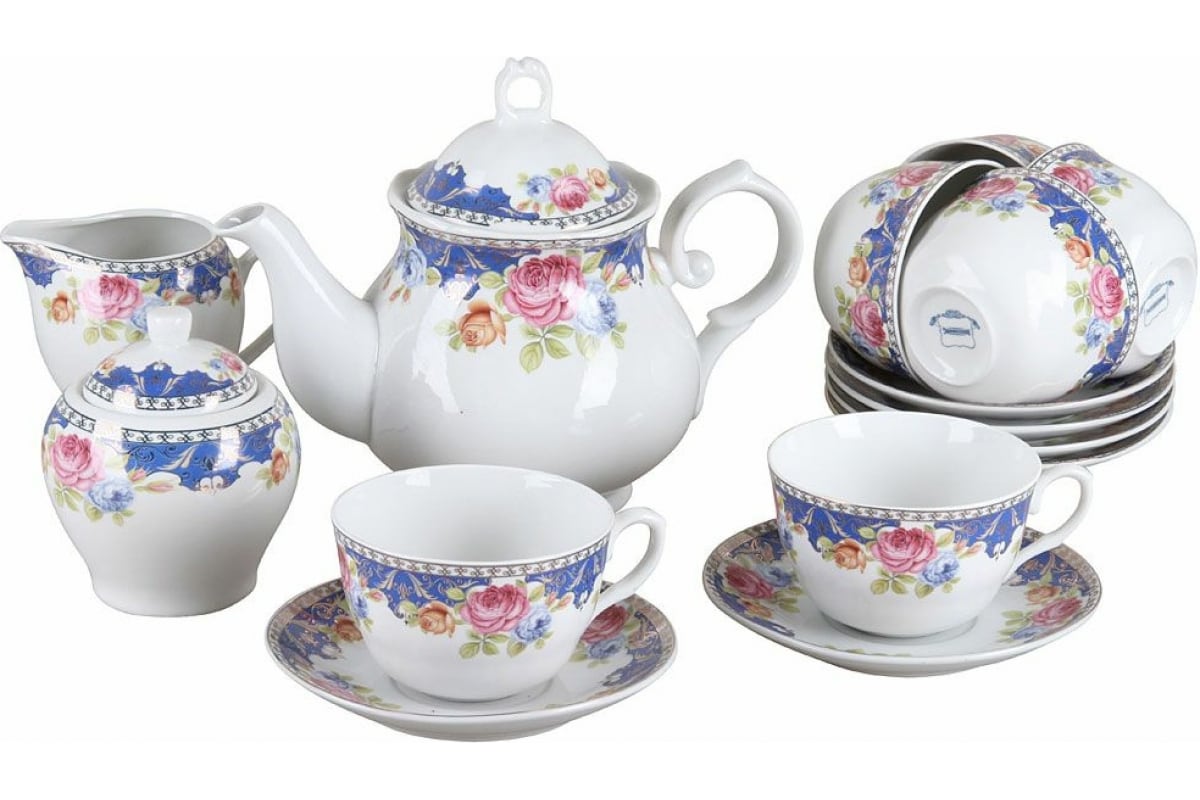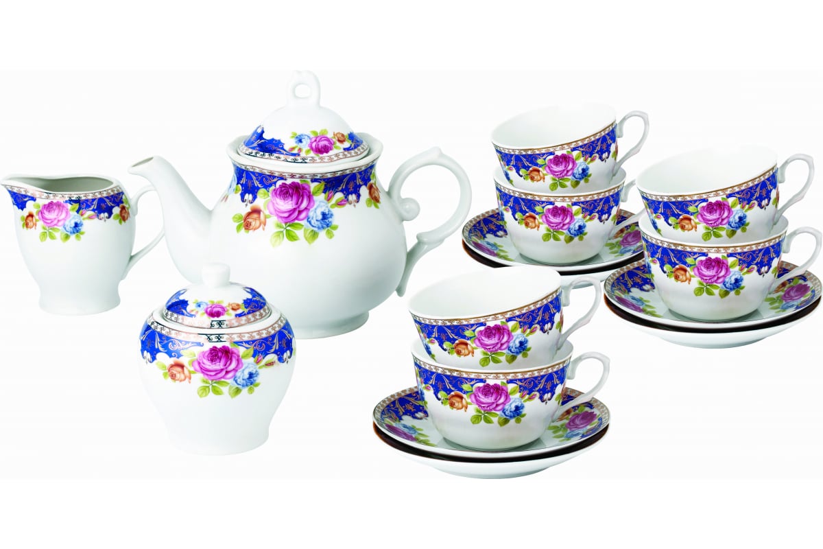 чашка - 6 шт, блюдце - 6 шт, чайник - 1 шт, молочник - 1 шт, сахарница - 1 шт.