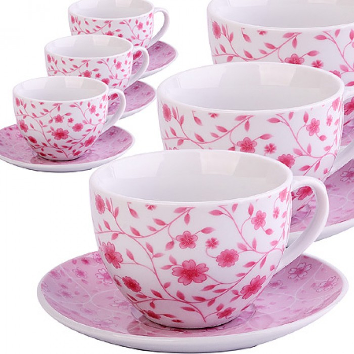 Чайный набор LORAINE на 6 персон выполнен из фарфора высокого качества и оформлен красивым цветочным рисунком. Изящный дизайн придется по вкусу и ценителям классики, и тем, кто предпочитает утонченность и изысканность. Набор упакован в стильную подарочную коробку, оформленную изнутри белой атласной тканью. Каждый предмет надежно зафиксирован внутри коробки благодаря специальным выемкам. Чайный набор - идеальный и необходимый подарок для Вашего дома и для Ваших друзей в праздники, юбилеи и торжества! Также он станет отличным корпоративным подарком и украшением любой кухни. Подходит для мытья в посудомоечной машине. В наборе: 6 чашек, 6 блюдец и заварочный чайник.