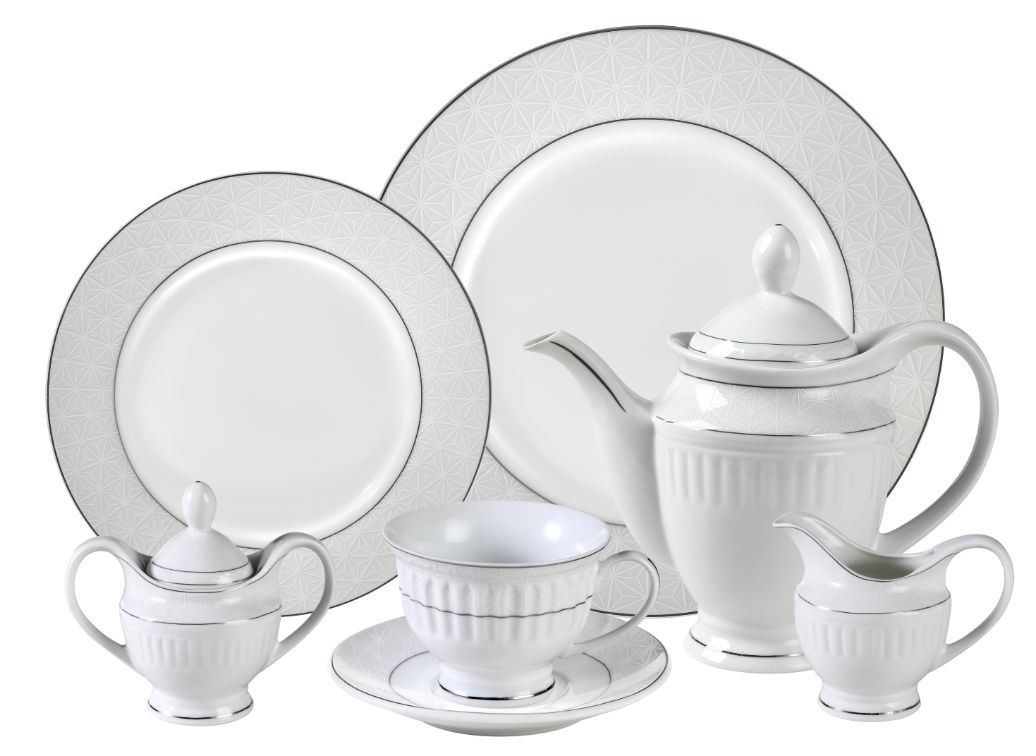 Сервиз WR-3108 чайн. 22 пр. В сервиз входят: Чашка – 6 шт. (160 мл); Блюдце – 6 шт. (14,0 см); Чайник заварочный с крышкой – 1 шт. (1250 мл); Сахарница с крышкой –1 шт. (400 мл); Сливочник – 1 шт. (300 мл); Тарелка обеденная – 1 шт. (26,7 см); Тарелка десертная – 6 шт. (19,0 см); Состав: фарфор. Подходит для чистки в посудомоечной машине.
