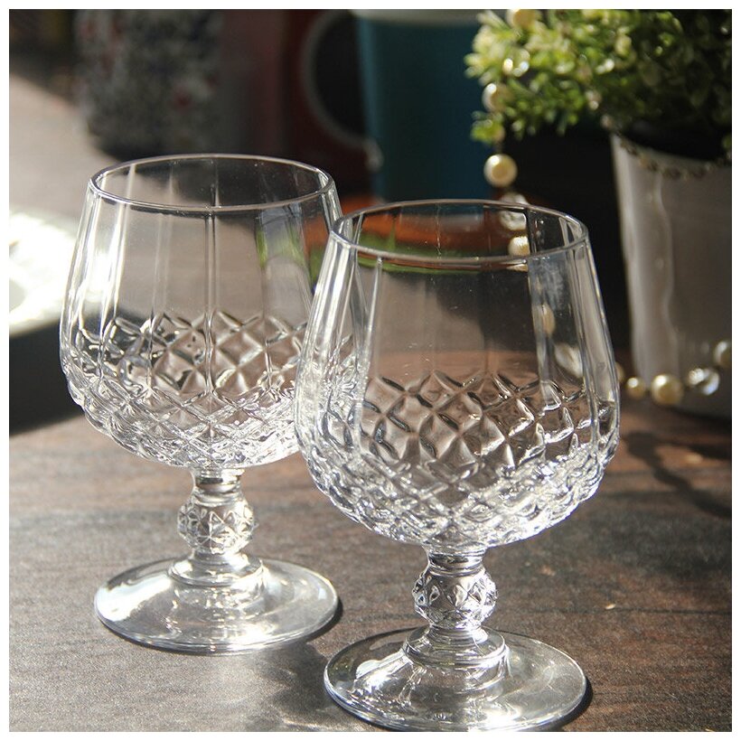 Набор бокалов для коньяка Eclat Cristal D'Arques Longchamp на короткой ножке удобно ложится в ладонь и благородный напиток приобретает нужную температуру. Резные бокалы из искусственного хрусталя по своим оптическим качествам ничуть не уступают хрусталю природному, смотрятся солидно и могут стать достойным подарком мужчине.
