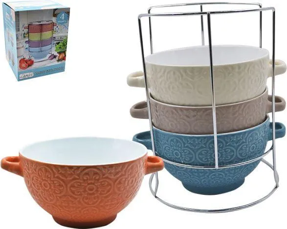 Набор бульонниц на металлической подставке (4шт.) "Орнамент 2",