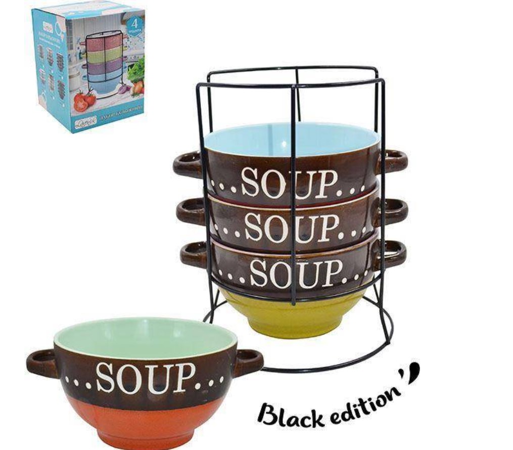Набор бульонниц на металлической подставке (4шт.) "Суп".
