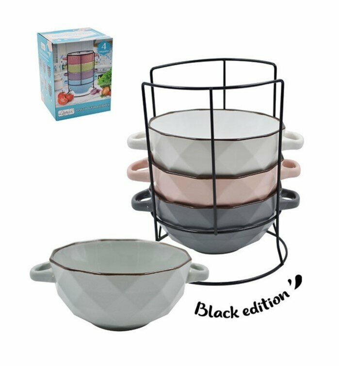 Набор бульонниц на металлической подставке (4шт.) "Стиль".