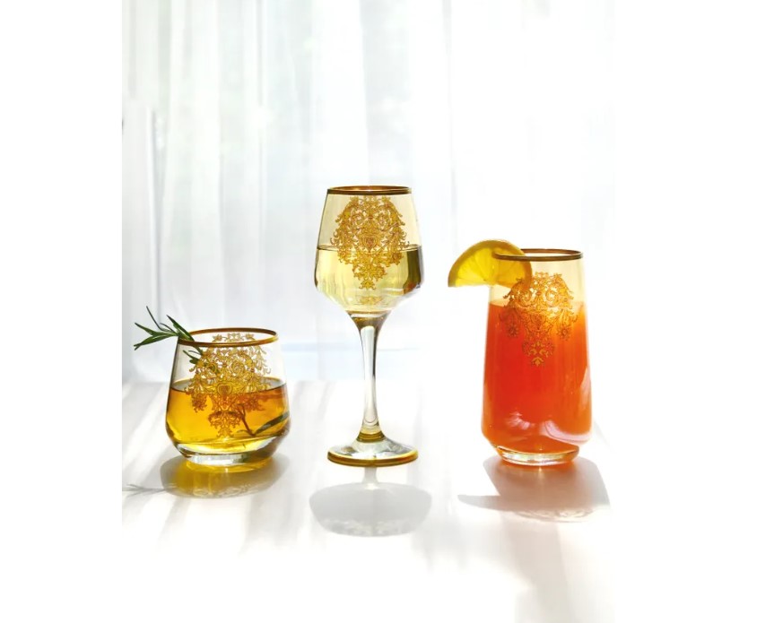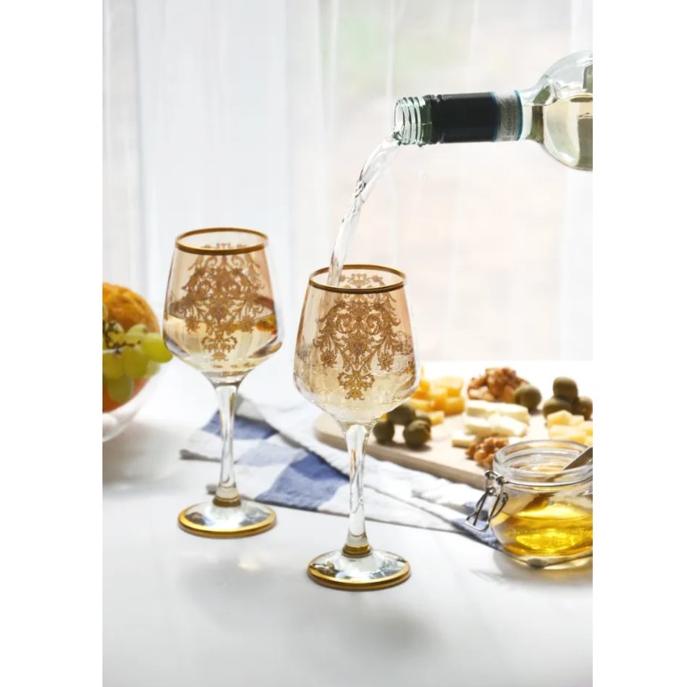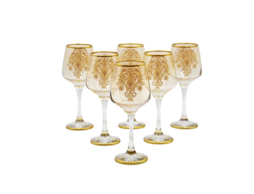 Набор стеклянных фужеров Decores DCS1252 с золотым декором для вина 6 шт .по 350мл."Герб"