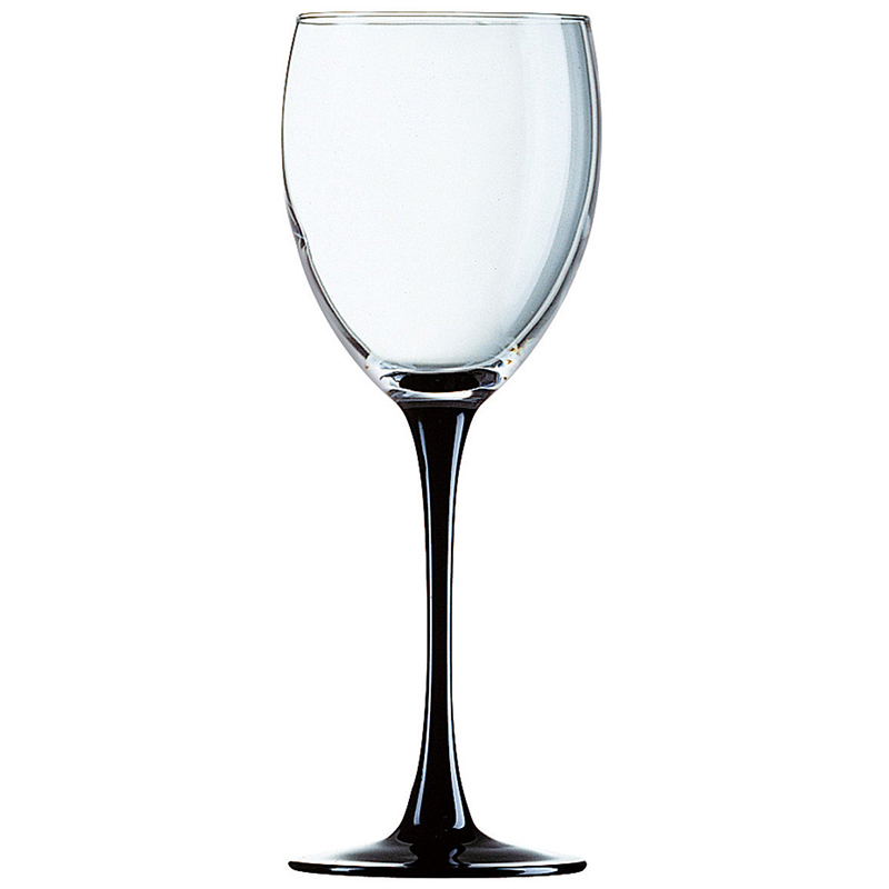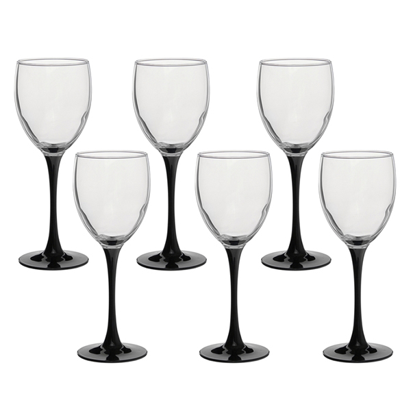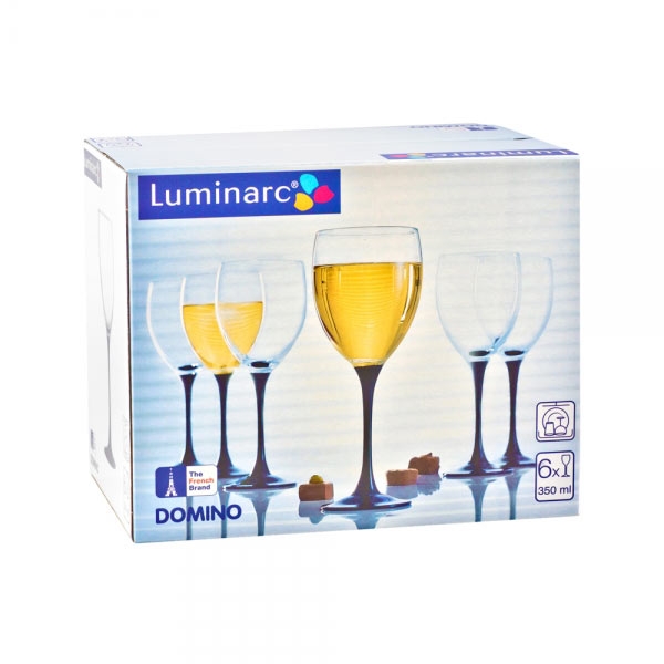 Бокалы для вина Luminarc Domino - образец черно-белой посуды. Прозрачная чашечка и черная ножка. Обычно их комбинируют в сервировке с черной или белой посудой.