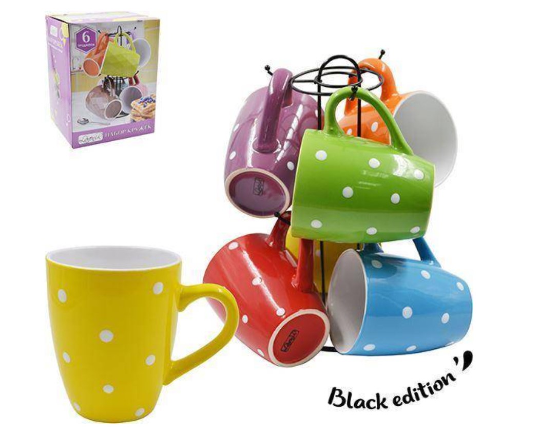 Набор кружек на металлической подставке 6 предметов "Яркий горошек".