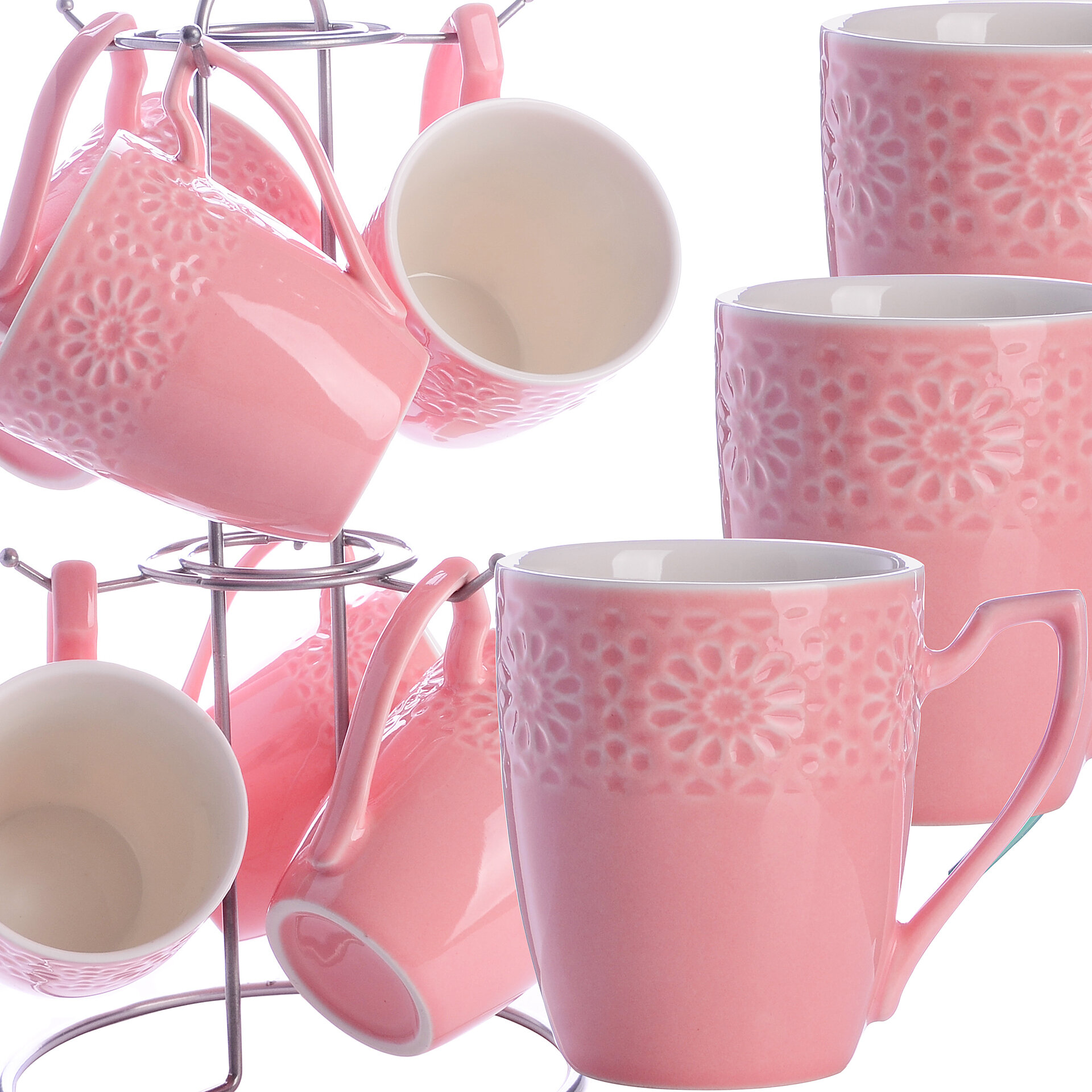 Чайный набор состоит из 6 чашек и 1 металлической подставки. Предметы набора изготовлены из высококачественного фарфора. Изящный дизайн с рельефной отделкой придется по вкусу и ценителям классики, и тем, кто предпочитает утонченность и изысканность.