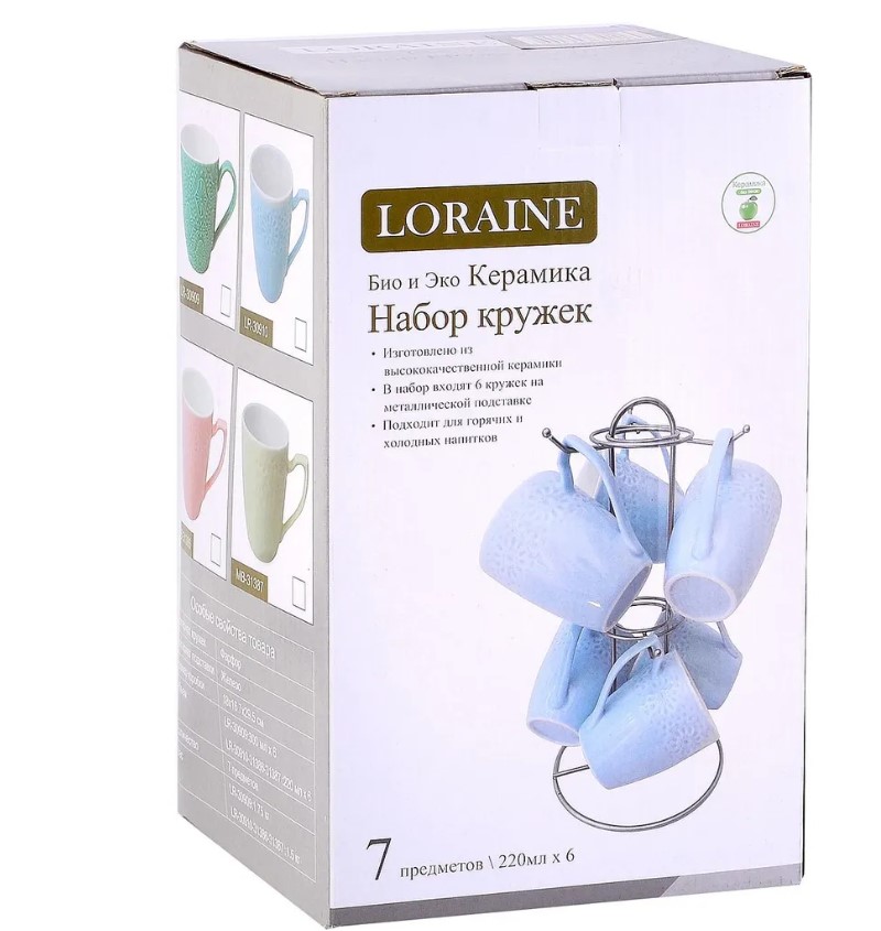 Набор кружек - идеальный и необходимый подарок для вашего дома и для ваших друзей в праздники. В комплекте - металлическая подставка с шестью крючками для подвешивания кружек.