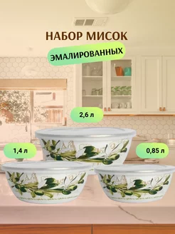 Набор мисок ZEIDAN , 6 предметов, (3 МИСКИ С КРЫШКАМИ 1) 0,85 л. высота 6 см. диаметр 16 см), 2) 1,4 л, высота 7,5 см. диаметр 18 см), 3) 2,6 л. высота 8,5 см. диаметр 20 см) с внутренним эмалированным покрытием), эмалированная сталь, внешнее покрытие - эмаль с рисунком. Подарочная упаковка.