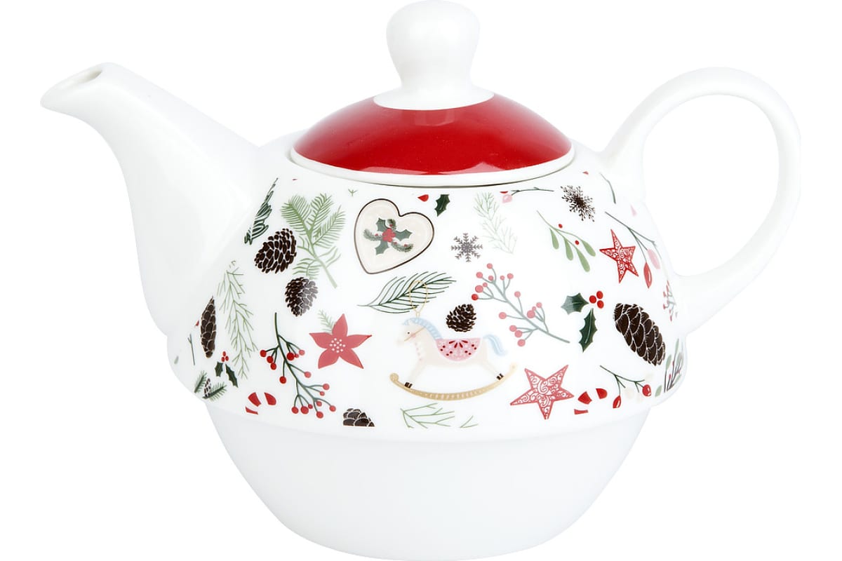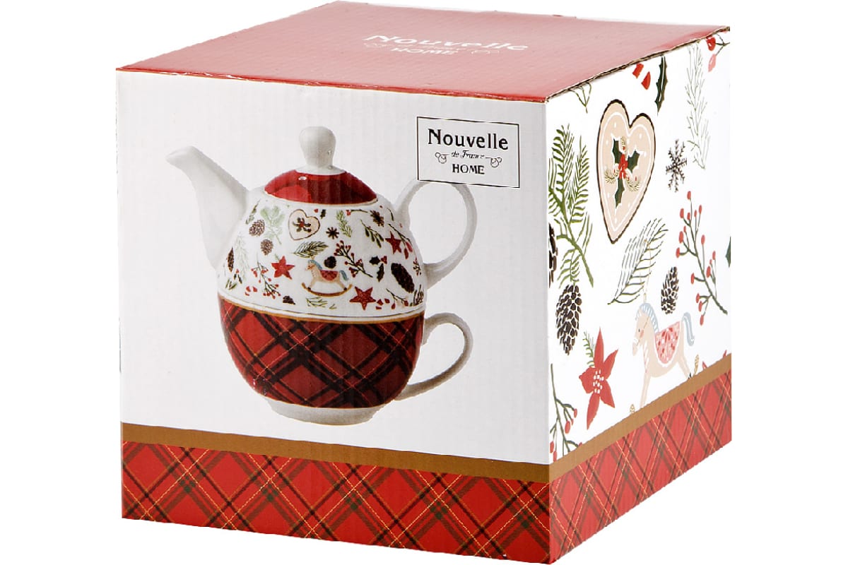 Размеры: чайник - 16х11х11 см, объем - 400 мл; чашка - 13х11х6 см, объем - 270 мл.