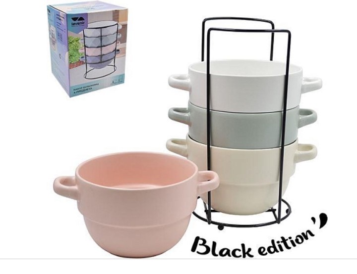 Набор бульонниц на металлической подставке (4шт.).