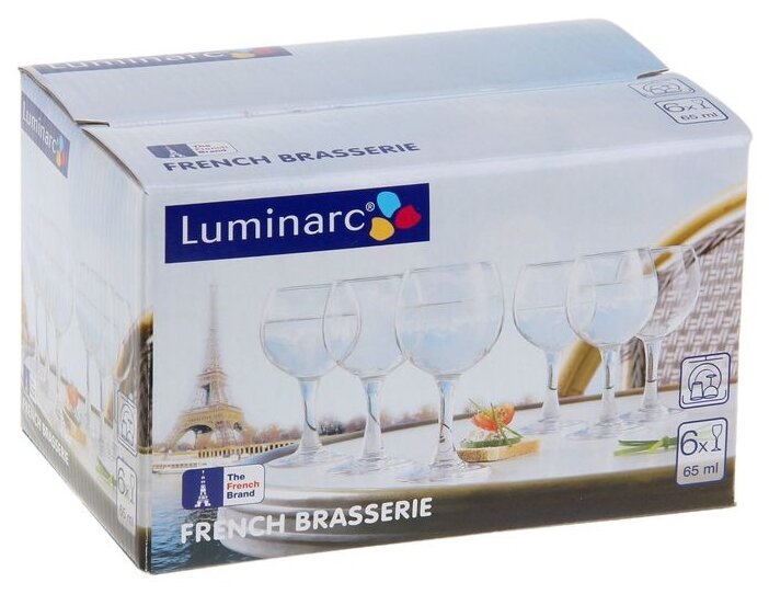 Набор Luminarc Французский ресторанчик состоит из 6 рюмок на длинных тонких ножках, изготовленных из высококачественного стекла. Изделия оформлены в классическом стиле. Такой набор прекрасно дополнит праздничный стол и станет желанным подарком в любом доме. Можно мыть в посудомоечной машине.