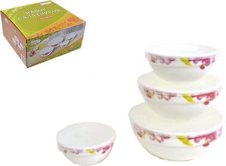 Набор салатников 4 предмета "Орхидея". Салатники с пластиковыми крышками.