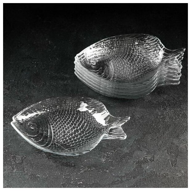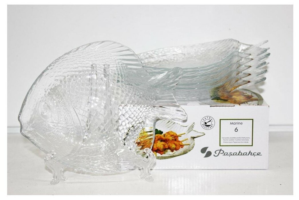 Набор тарелок Pasabahce "Марин" изготовлен из прозрачного рифленого стекла с повышенной термостойкостью в форме рыбы.