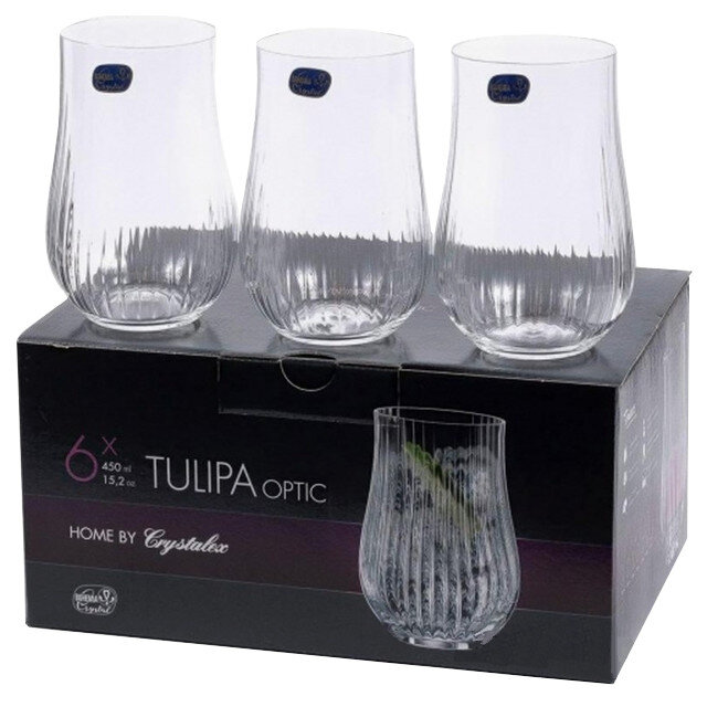 Серия ''Тулипа'' завода ''Crystalex'' имеет современный утонченный дизайн. Стекло данного завода обладает особой прозрачностью. Стаканы этой серии могут стать как отличным подарком по любому поводу, так и прекрасным дополнением домашнего интерьера. В наборе 6 стаканов. Можно использовать в посудомоечной машине.
