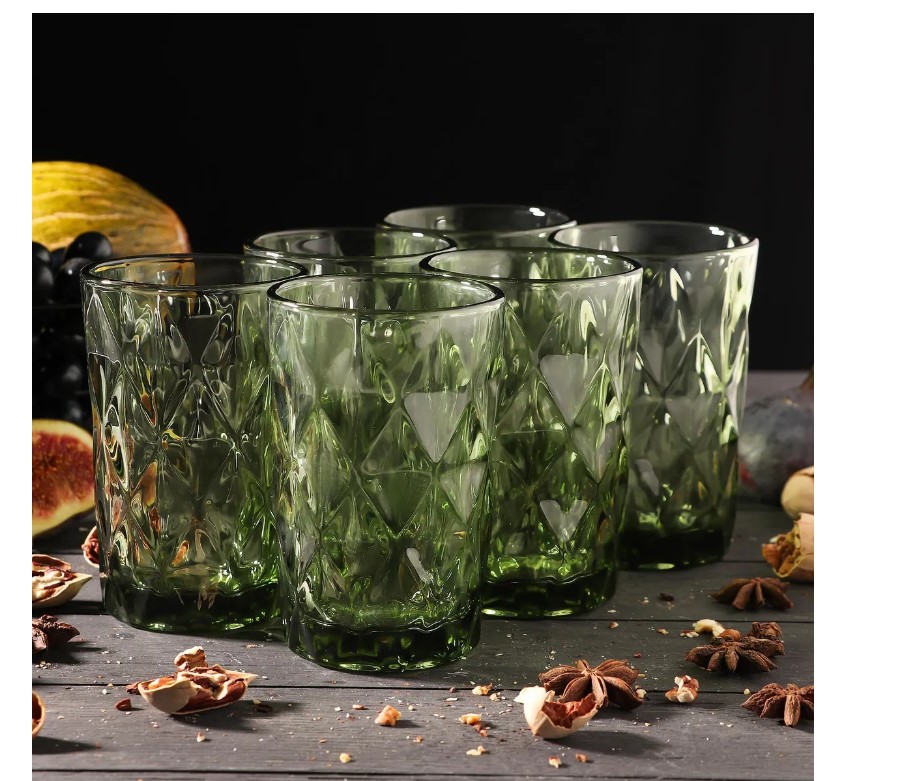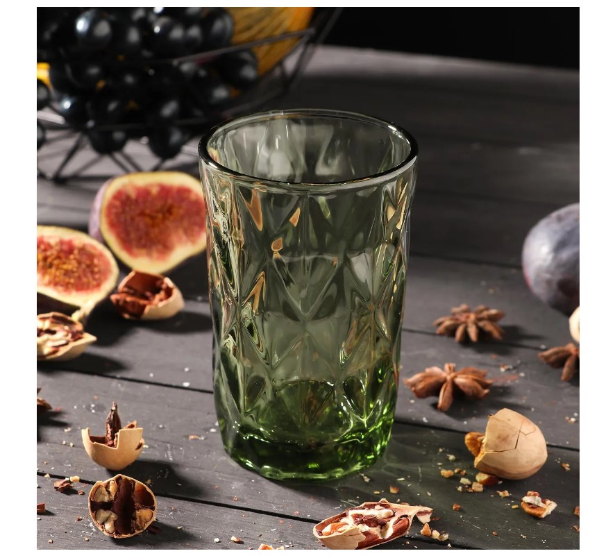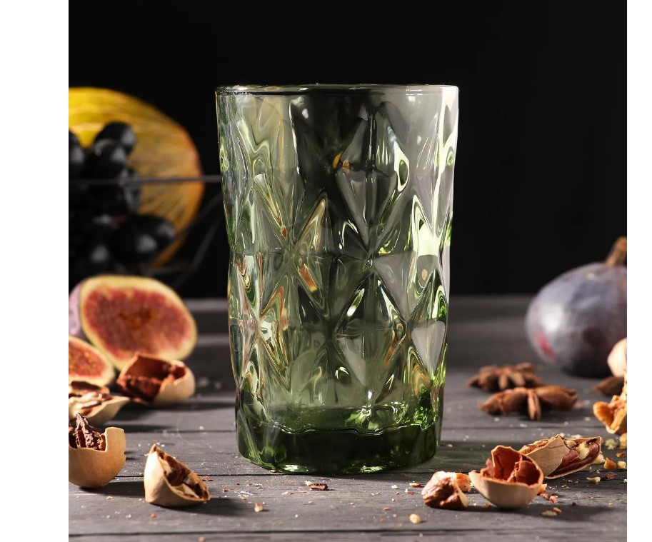 Стаканы из цветного стекла украсят любую кухня. Объем стакана 350 мл.