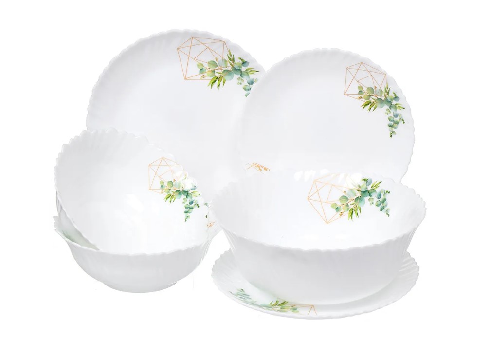 - Состав набора - тарелка обеденная, 6 шт - тарелка десертная, 6 шт -салатник малый, 6 шт - салатник большой, 1 шт.