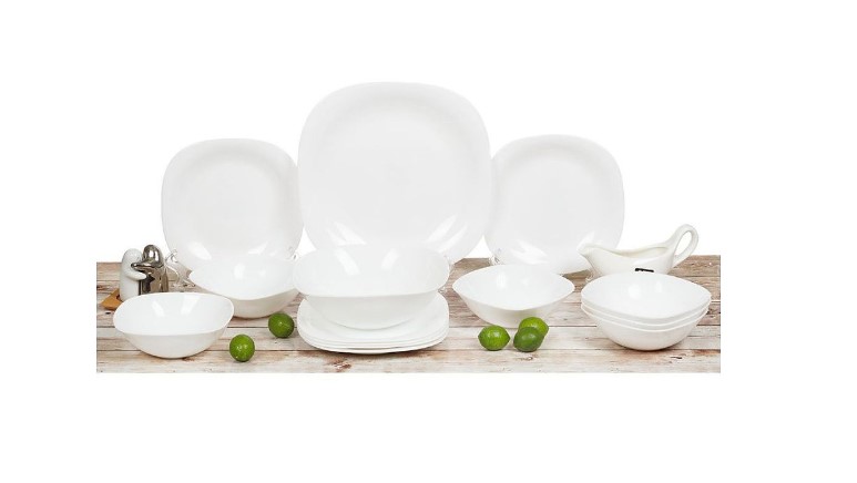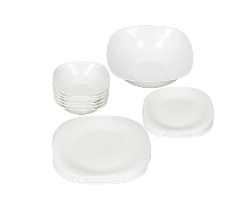 Столовый сервиз изготовлен из экологически чистых материалов и состоит из 19 предметов. Сервиз устойчив к механическим воздействиям. Он подходит для использования в СВЧ печи и посудомоечной машине.