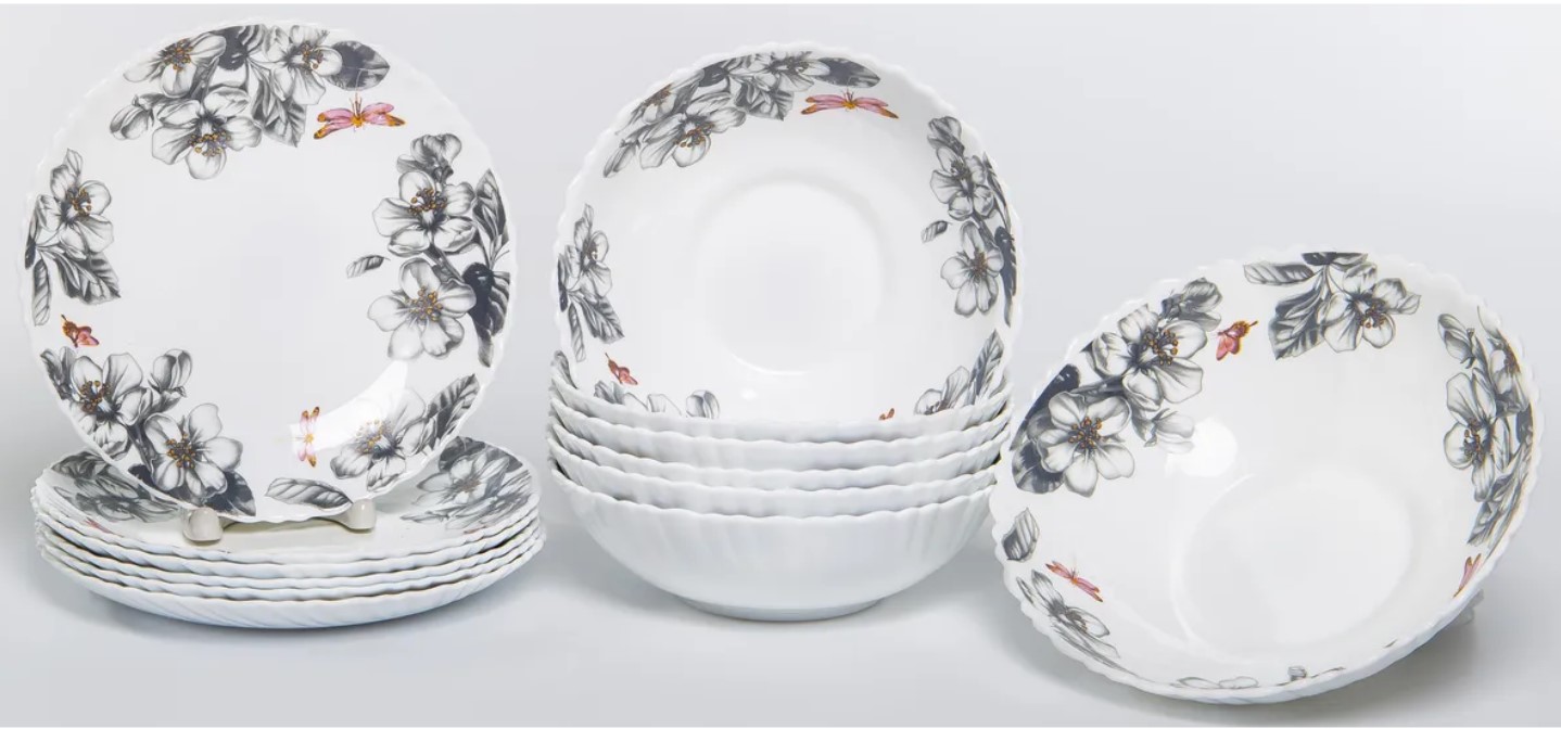6 мелк.тарелок 190мм + 6 салатников 650мл 175мм + салатник 950мл 200мм,