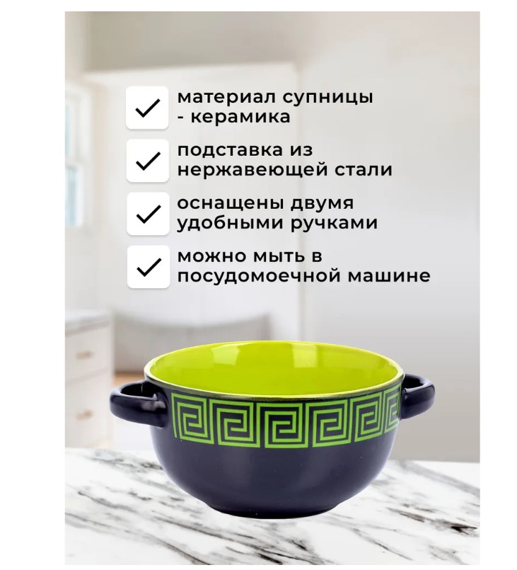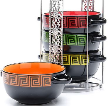 Набор из 4-х супниц Loraine выполнен из высококачественной керамики и украшен декоративным рисунком. Супницы компактно располагаются на оригинальной подставке из нержавеющей стали и не занимают много места при хранении. В керамической посуде блюда сохраняют свои вкусовые качества, кроме того она обладает термической и химической прочностью. Благодаря оригинальному дизайну, такие супницы отлично подойдут как для ежедневного использования, так и для праздничной сервировки стола. Изделия оснащены двумя удобными ручками.
