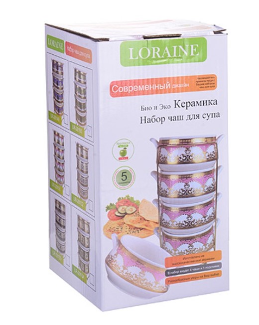 Набор из 4-х супниц LORAINE выполнен из высококачественного фарфора и украшен декоративным рисунком.