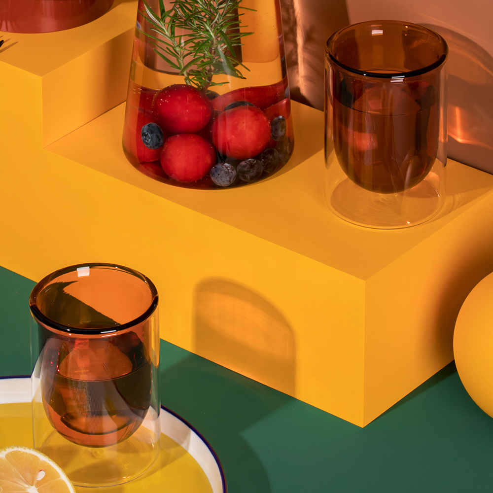 Дизайн чашки представляет собой соединение стекол двух цветов с сохранением пространства между слоями. Таким образом, создается ощущение воздушности и легкости.