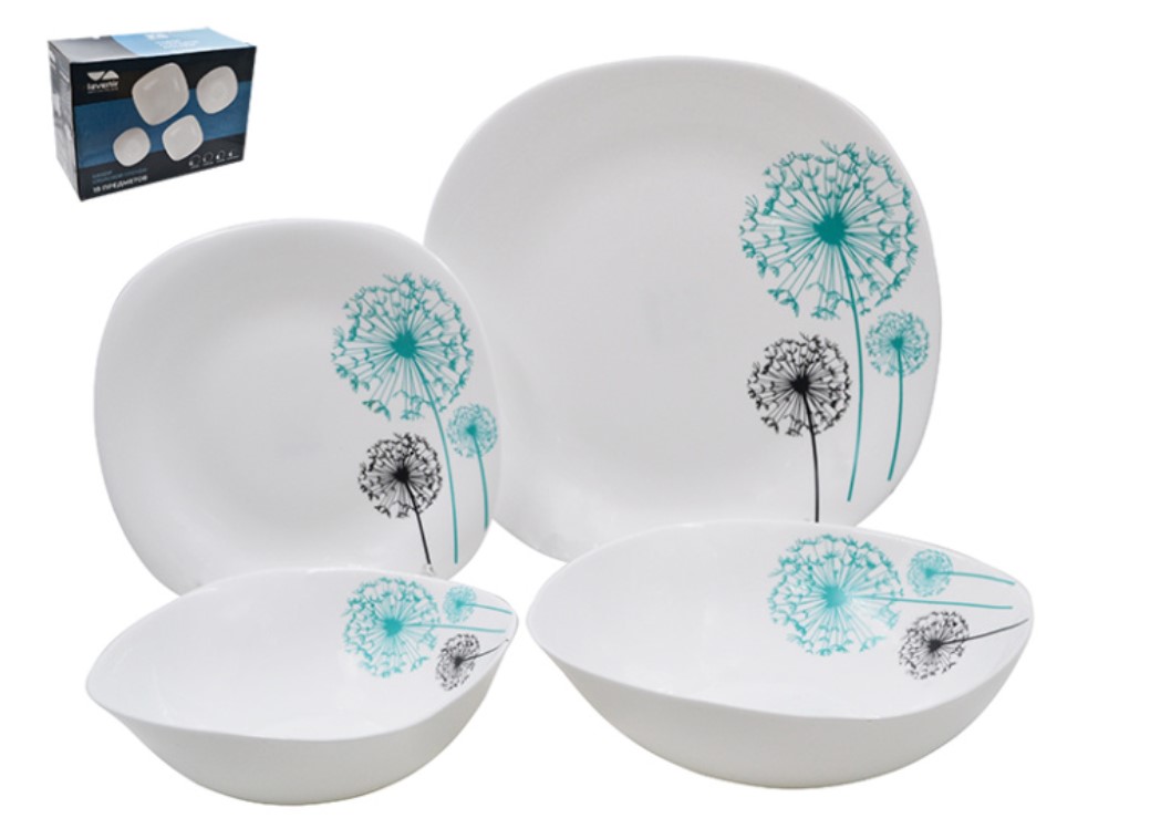 Столовый набор 19 предметов "Одуванчики" (квадрат.).