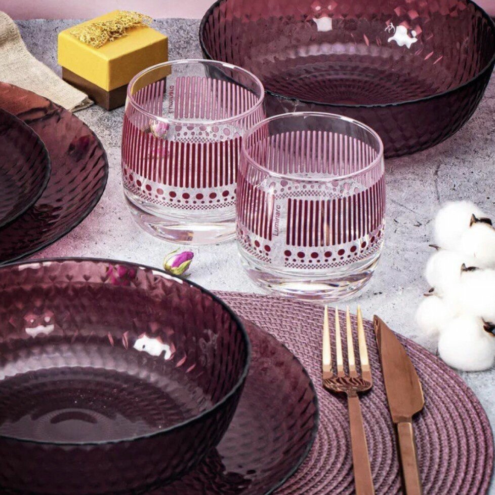 Столовый набор Luminarc Idylle Идиллия Лилак - 16 пр.+ стаканы Ромб Лилак, 310 мл.