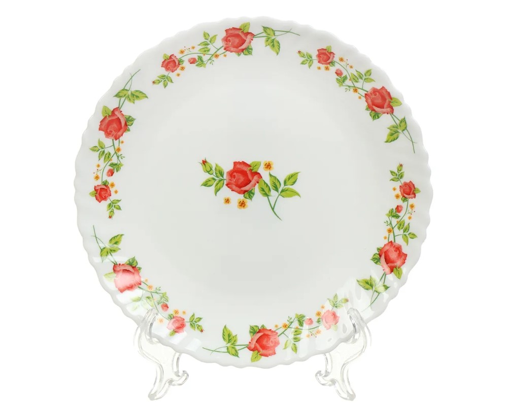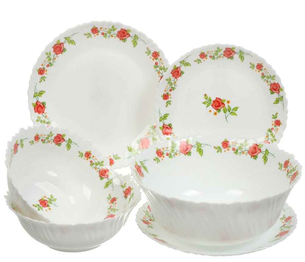 Обеденный сервиз изготовлен из стеклокерамики, имеет стильный дизайн и качественно нанесенный рисунок. Посуда отличается прочностью, гигиеничностью и долгим сроком службы, она устойчива к появлению царапин и резким перепадам температур, поэтому её можно использовать в посудомоечной машине и микроволновой печи.