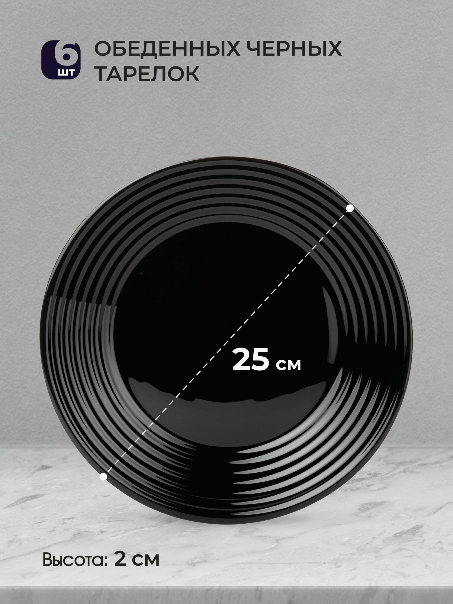 Тарелка обеденная черная 25 см - 6 шт.