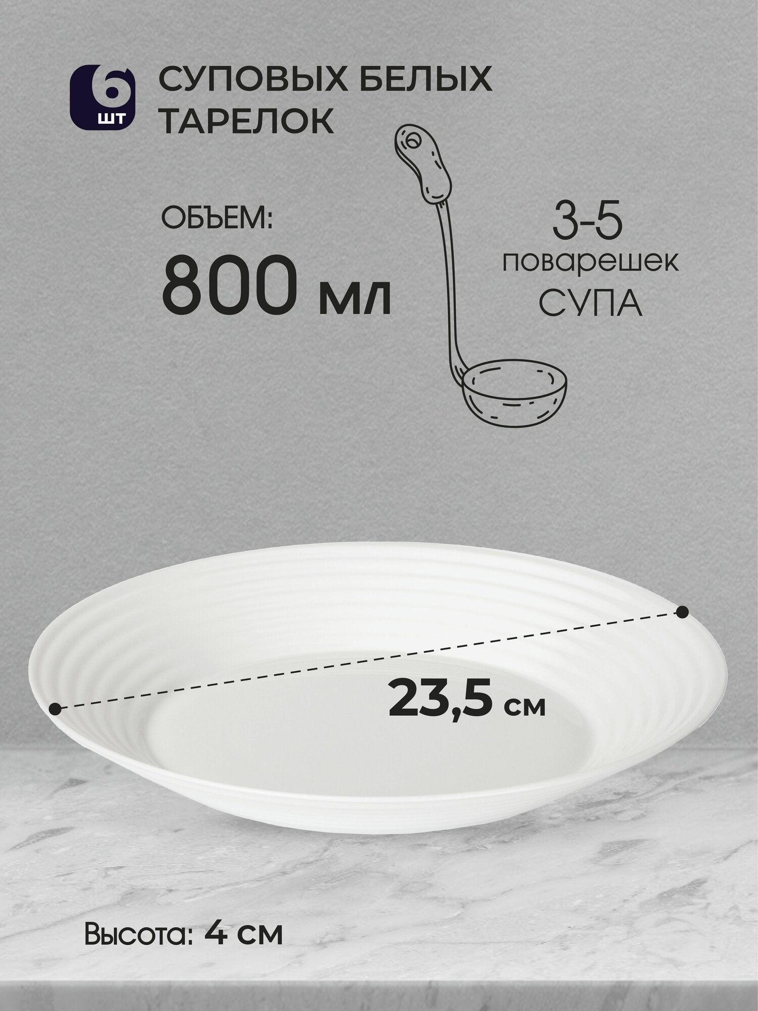 Тарелка суповая белая 23,5 см - 6 шт.