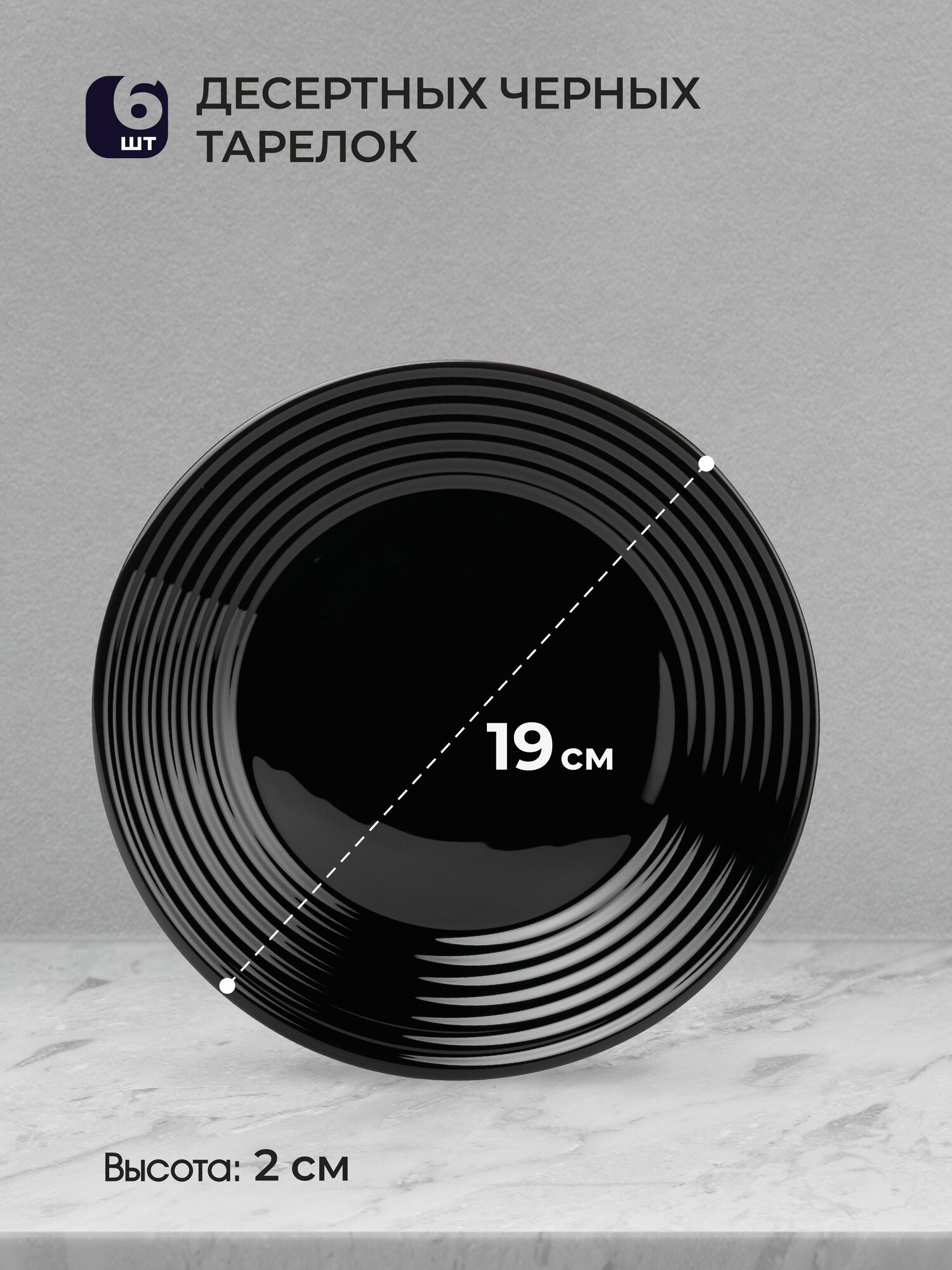 Тарелка десертная черная 19 см - 6 шт.