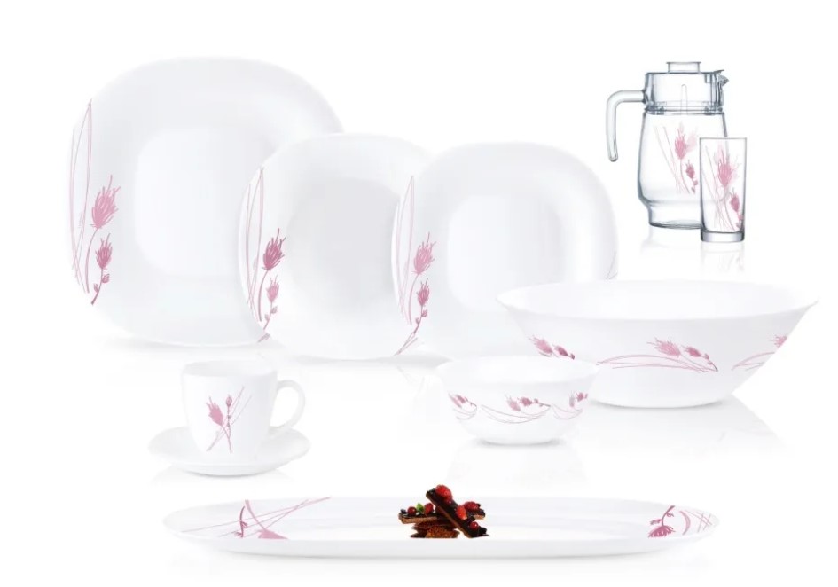 Тарелка десертная 19,5 см - 6 шт. Тарелка обеденная 27 см - 6 шт. Тарелка глубокая 21 см - 6 шт. Салатник большой 27 см - 1 шт. Салатник малый 12 см - 6 шт. Блюдо овальное 35 см - 1 шт. Чашка 220 мл - 6 шт. Блюдце 14 см - 6 шт. Графин с крышкой из высококачественного пластика 1,6 л - 1 шт. (2 предм.) Стакан высокий 270 мл - 6 шт.
