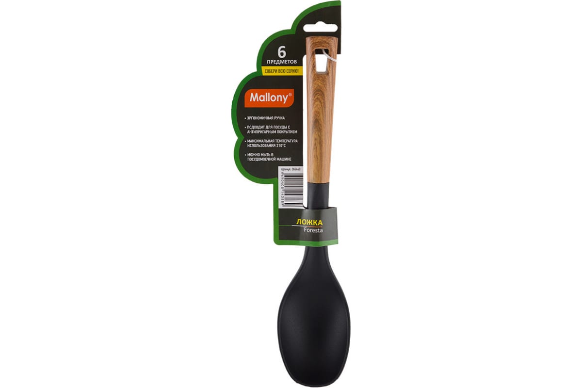 Ложка Mallony FORESTA из нейлона, с пластм ручкой, дизайн под дерево, 32,5x7 см 006460 предназначена для приготовления пищи.