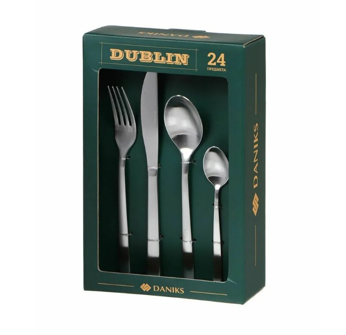 6 столовых ложек, 6 чайных ложек, 6 столовых ножей, 6 вилок