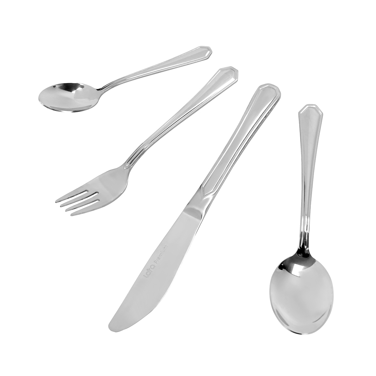 Столовые приборы LARA LR10-20/24 Альтаир – это сочетание превосходного качества и элегантного стиля. В наборе 24 предмета на 6 персон. Легкий и лаконичный дизайн дополнен акцентом на ручках. Каждый предмет идеально сбалансирован, ручки имеют специальную форму и отлично лежат в руке. Яркая зеркальная полировка не тускнеет, приборы выполнены из пищевой нержавеющей стали. Все изделия высокого качества и очень прочные, не гнутся, имеют длительный срок службы, отлично сохраняют эксплуатационные свойства. Столовые приборы Lara подходят как для ежедневного использования, так и для сервировки праздничного стола. За приборами легко ухаживать, их можно мыть в посудомоечной машине.