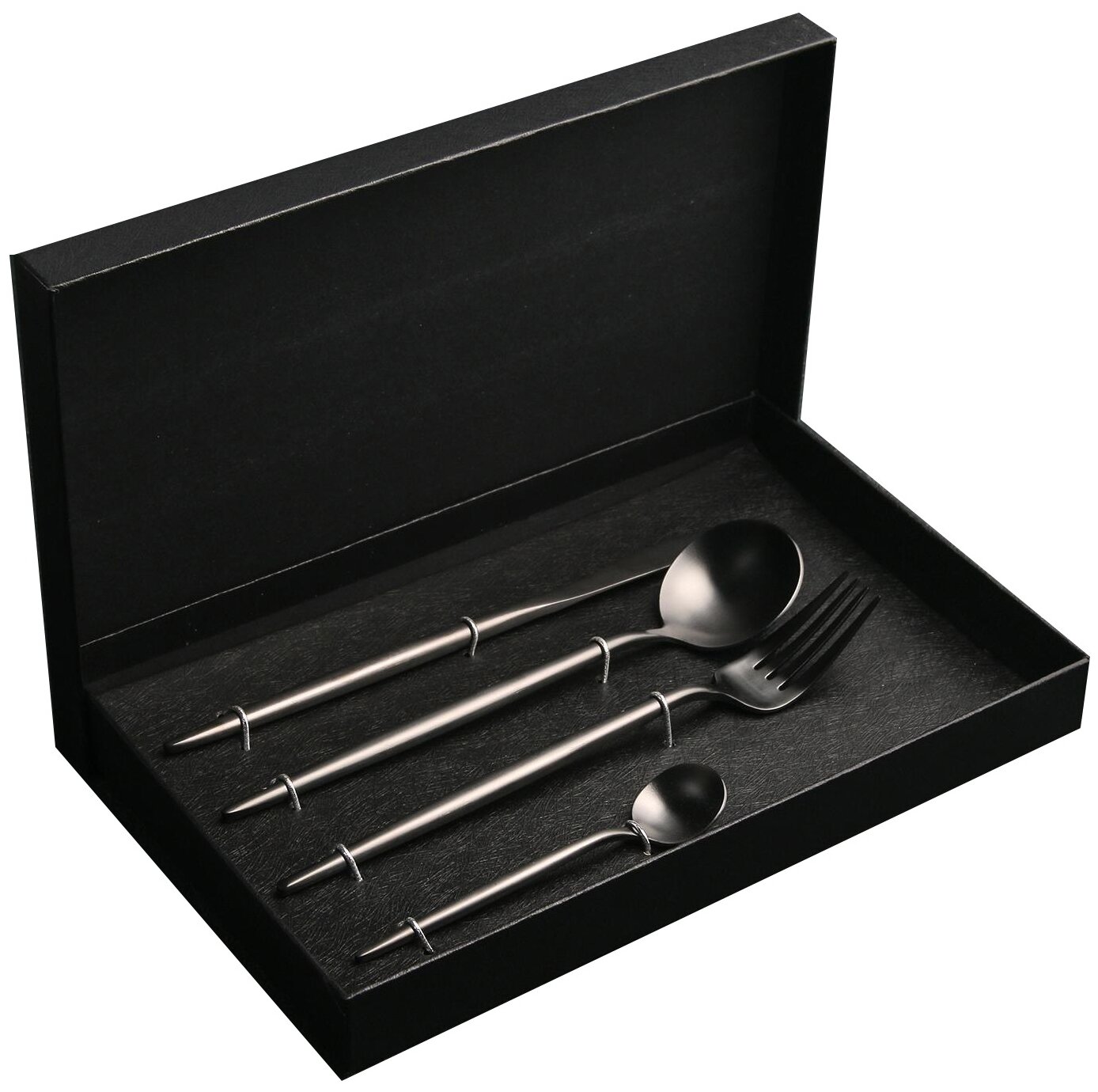 столовая ложка: длина ручки 16,5 см, диаметр черпака: 6 × 5,5 см; вилка: длина ручки 16,5 см, размер рабочей части: 6,5 × 2,5 см; нож: длина 22 см; чайная ложка: длина ручки 9,5 см, диаметр черпачка: 3,5 × 3,2 см