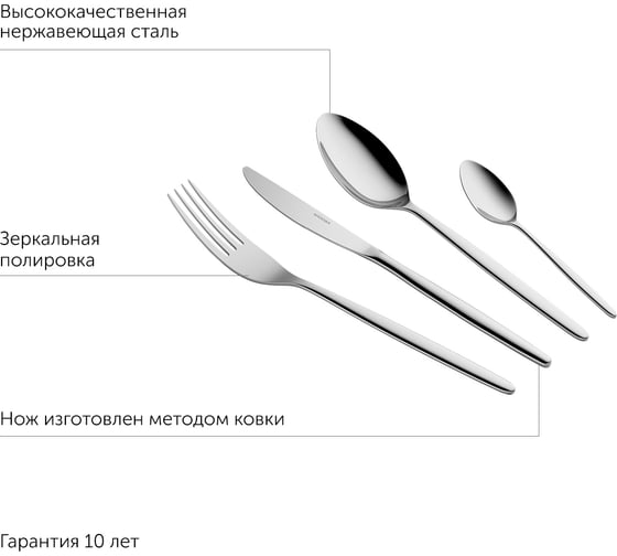 столовая ложка 4 шт, чайная ложка 4 шт, вилка 4 шт, столовый нож 4 шт