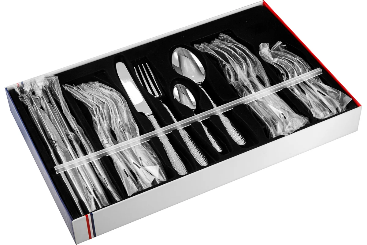6 столовых ложек, 6 столовых вилок, 6 столовых ножей, 6 чайных ложек