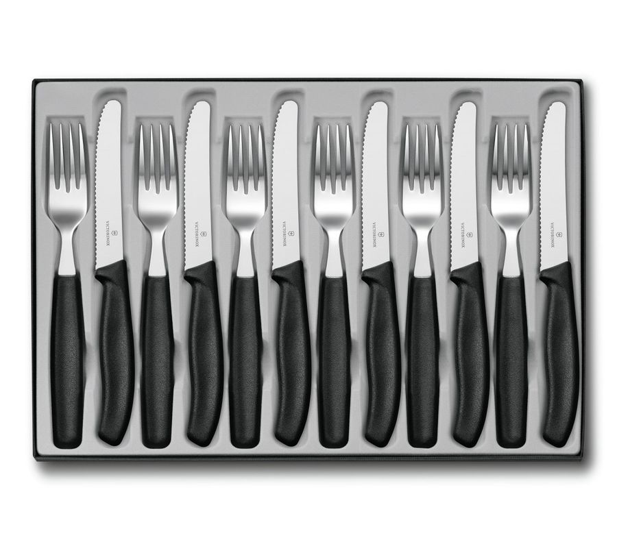 Состав набора: 6 стол.ножей+6 вилок, черные;