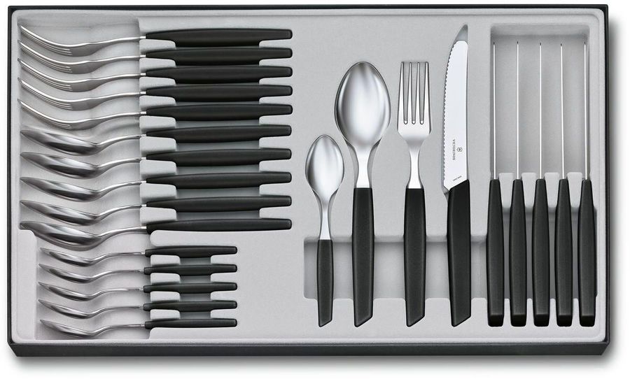 Состав набора: 6 ножей, 6 вилок, 6 столовыйх ложек, 6 чайных ложек.;