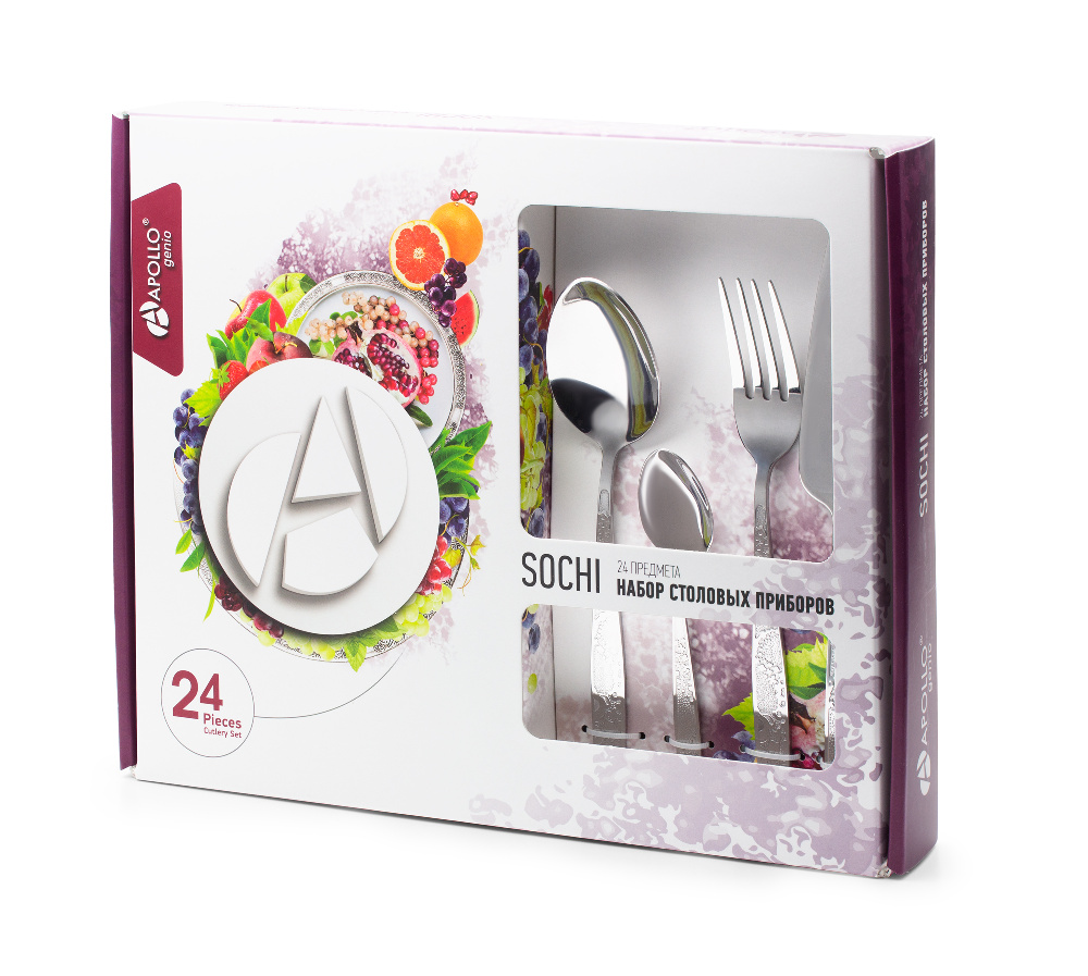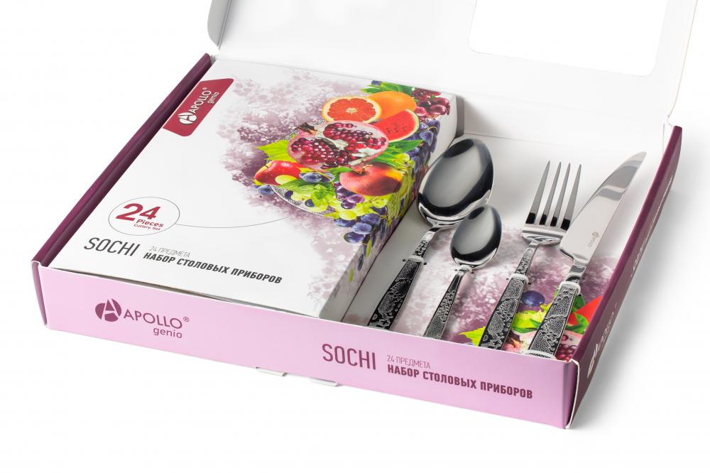 Столовые приборы "Sochi" выполнены из высококачественной нержавеющей стали. Они предназначены как для ежедневного использования, так и для сервировки стола. Благодаря классическому дизайну столовые приборы "Sochi" прекрасно подойдут к любой кухне и будут уместны за любым праздничным столом.