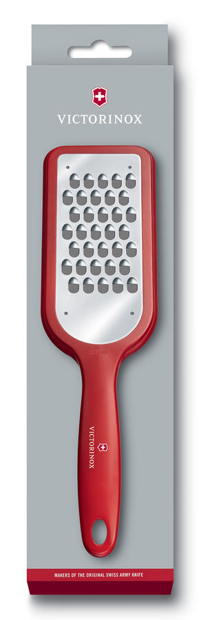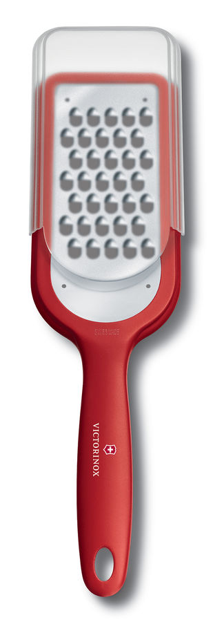 Крупная тёрка идеально подходит для измельчения овощей и фруктов. Противоскользящая рукоять с дополнительными выемками повышает удобство использования тёрки. Модель имеет защиту режущего элемента, что обеспечивает её безопасное хранение. Пригодна для использования в посудомоечной машине.