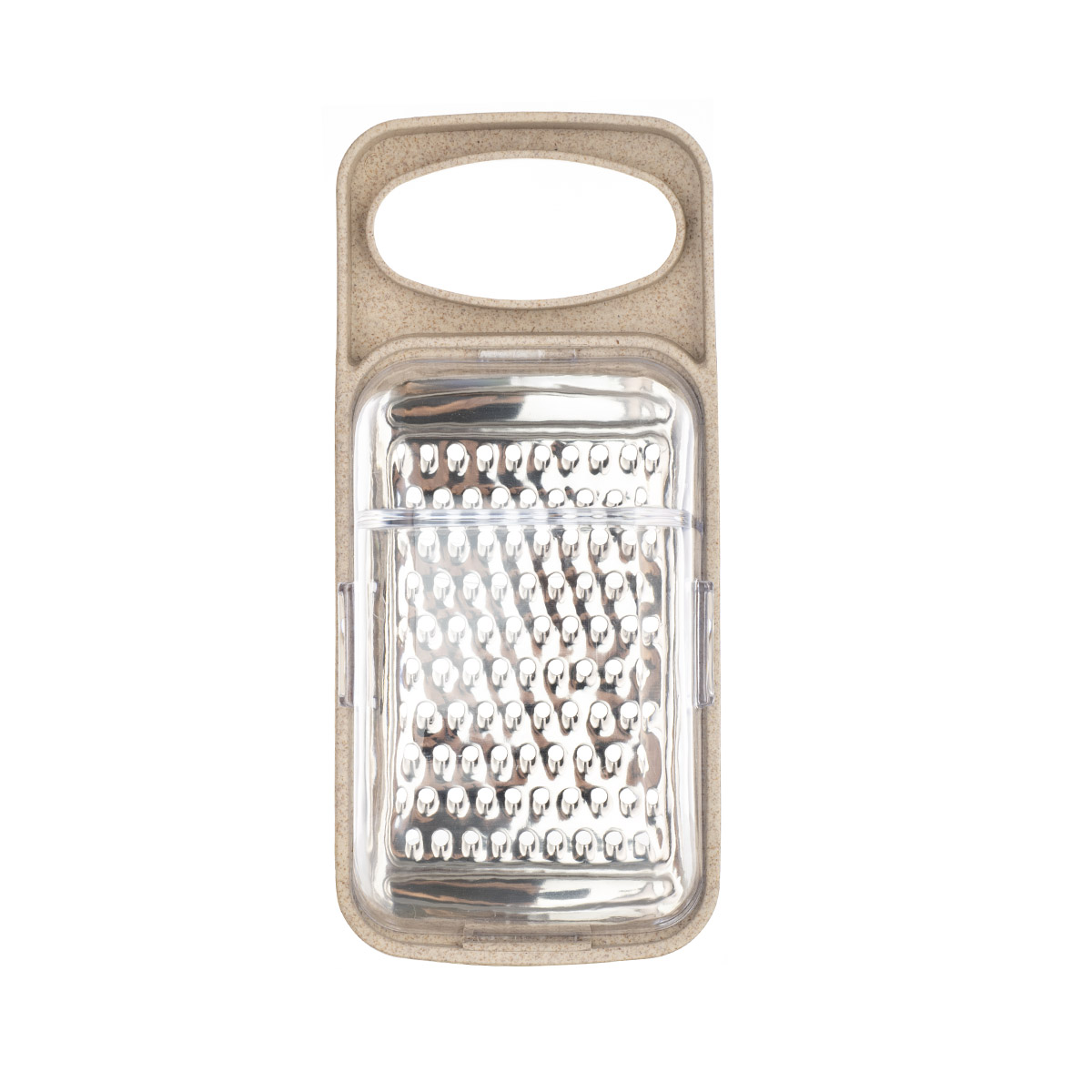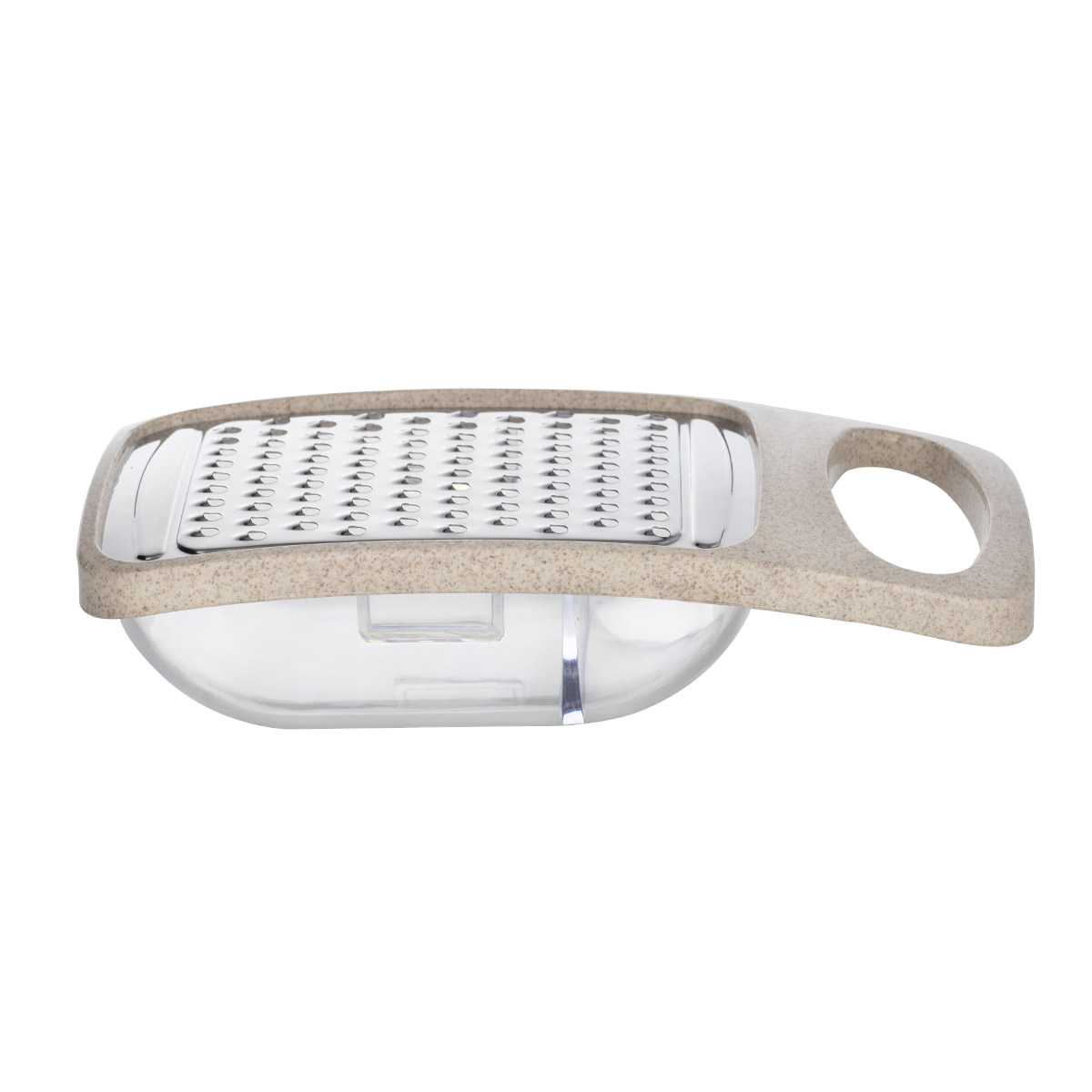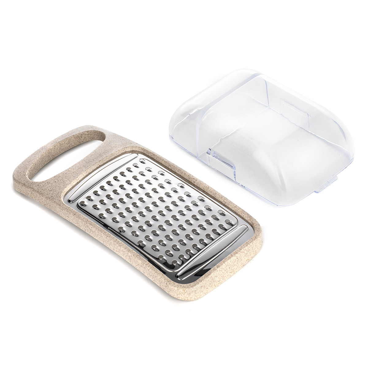 Горизонтальная терка с контейнером LARA поможет без особых усилий натереть яблоко, морковь, лук. Для вашего удобства продукт сразу попадает в контейнер и готов к дальнейшему использованию. Никаких крошек на рабочем пространстве. Терочная поверхность изготовлена из коррозионностойкой стали толщиной 0,3 мм. Материал корпуса содержит рисовую шелуху. Приобретая данное изделие, вы вносите вклад в снижение потребления пластика.