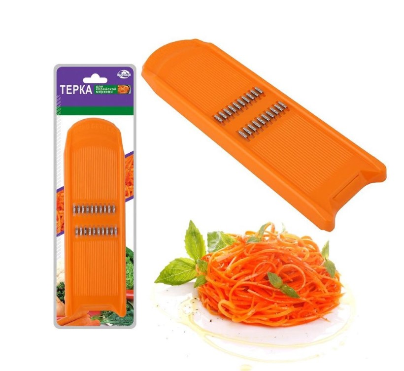 Трите не только морковку, а и свеклу, и яблоки, и даже огурцы для украшения блюда! Терка для корейской моркови действительно нужна на кухне у каждой настоящей хозяйки. К тому же она безопасна, ею фактически невозможно пораниться, если только преднамеренно не порезать руку.