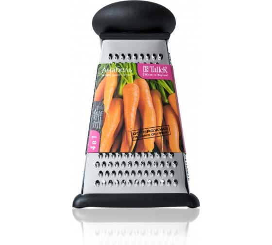 Терка TALLER высота 22 см основание 12.5х12.5 см 4 вида лезвий TR-21905 предназначена для измельчения пищевых продуктов.